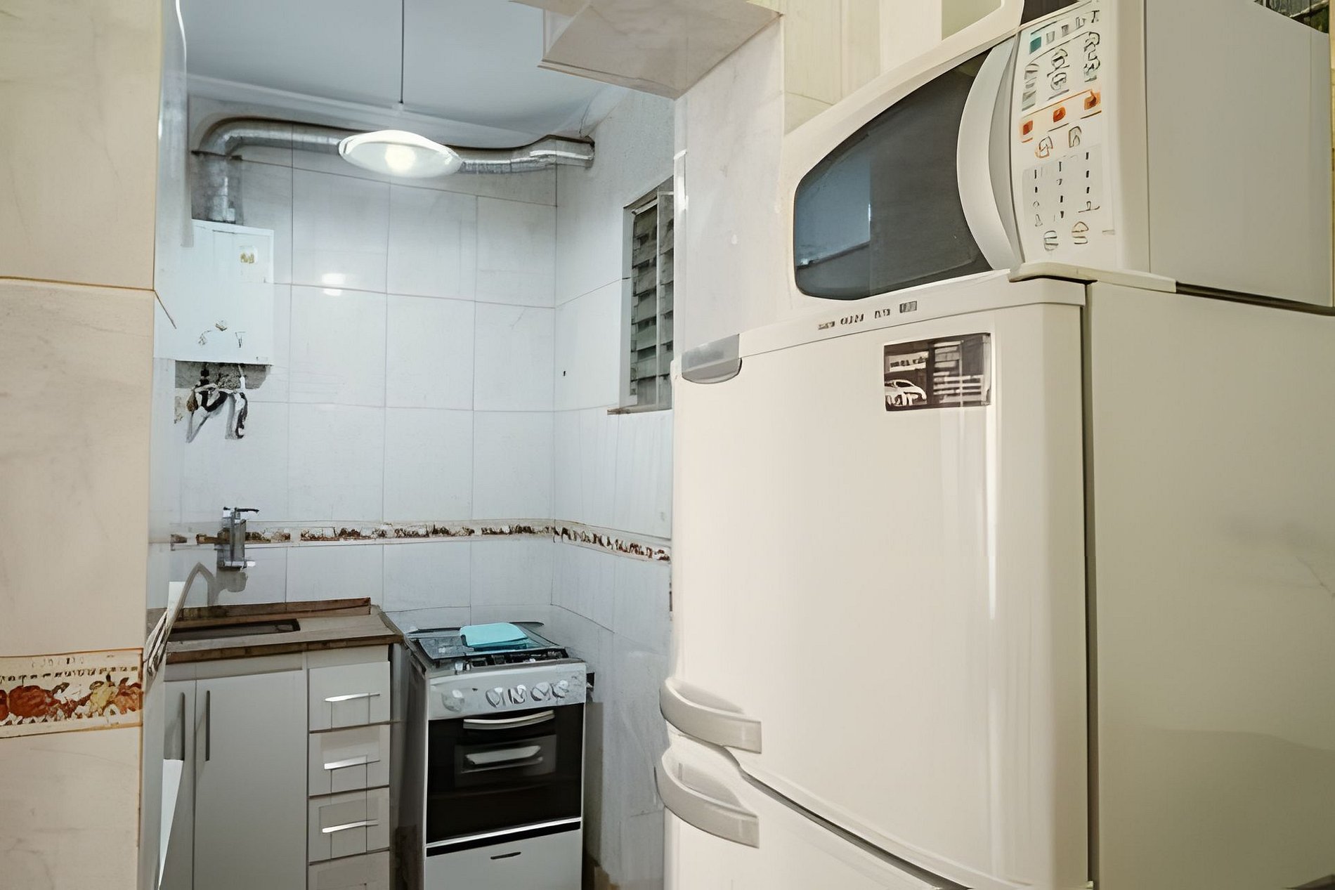 The apartment is ideal for groups of friends, family, couples and couples with children. The property has a large and bright living room with 1 sofa beds, tv, internet, split air conditioning and dining table. The apartment has a side view of the beach. The room has a double bed, tv, split air conditioning and internet. The kitchen offers a refrigerator, stove, microwave, blender, toaster and basic items for your stay. The property has a social bathroom and a service bathroom. The space offers total comfort and security for those who want to enjoy their vacation. The property has a privileged location, very close to the seaside and the area known as "Baixo Copa", with many good quality restaurants, bars and pubs. Guest access will be carried out with one of our collaborators. The building has a concierge to ensure the safety of tenants.