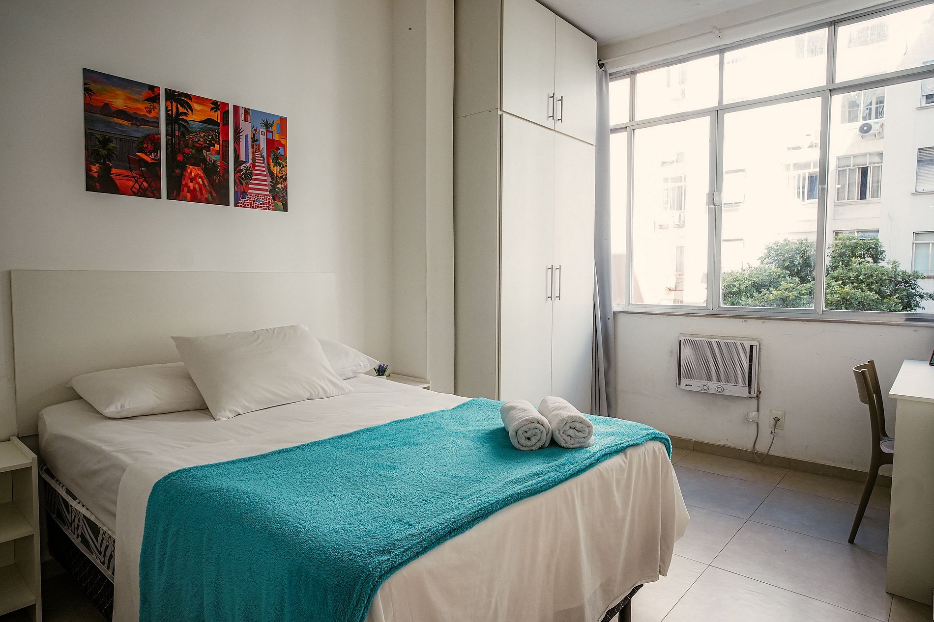 Apartamento aconchegante próximo à praia, excelente localização. Conta com cozinha compacta equipada com eletrodomésticos, cooktop e frigobar. Disponibiliza banheiro, Smart TV com Wi-Fi, ar-condicionado, cama de casal e ventilador de teto nos dois ambientes.