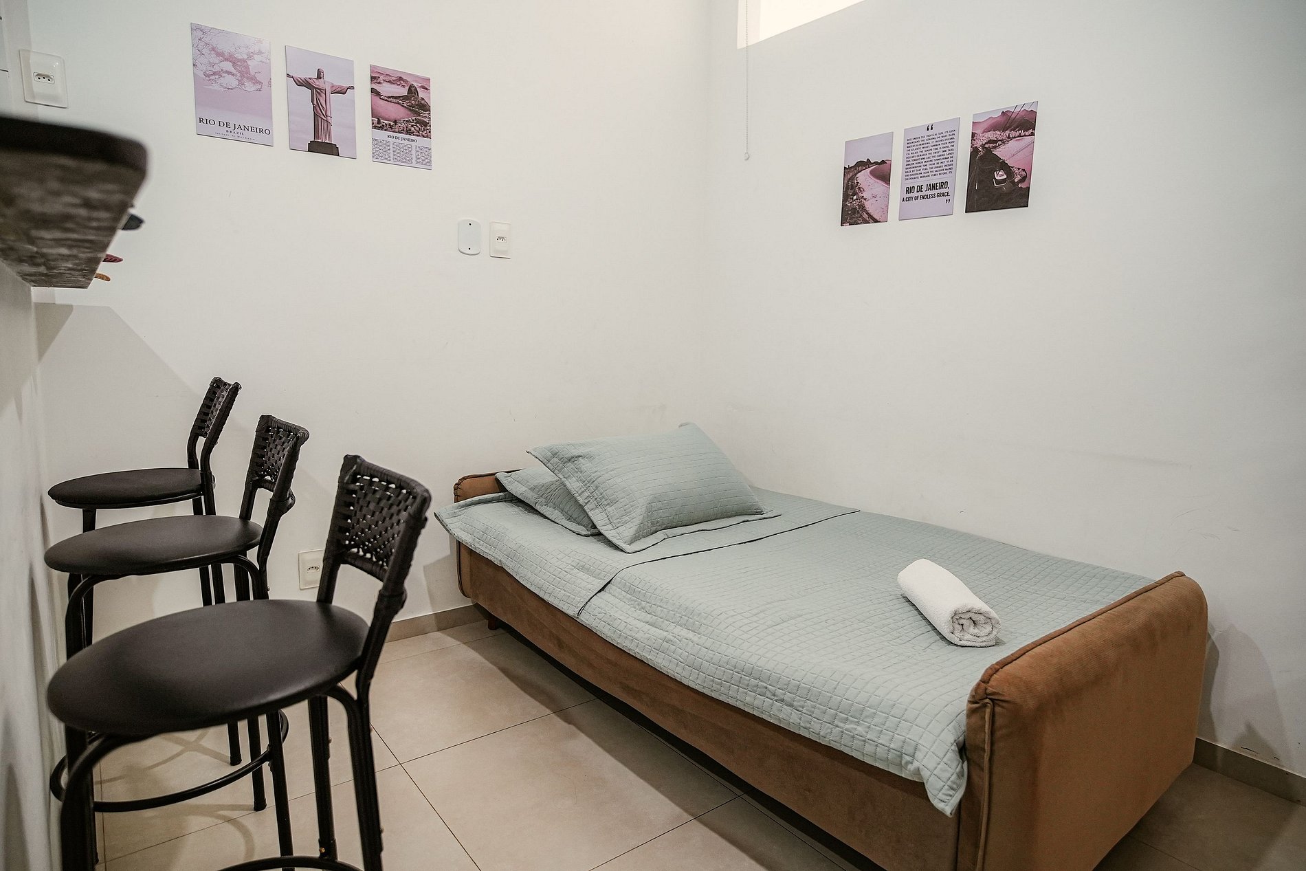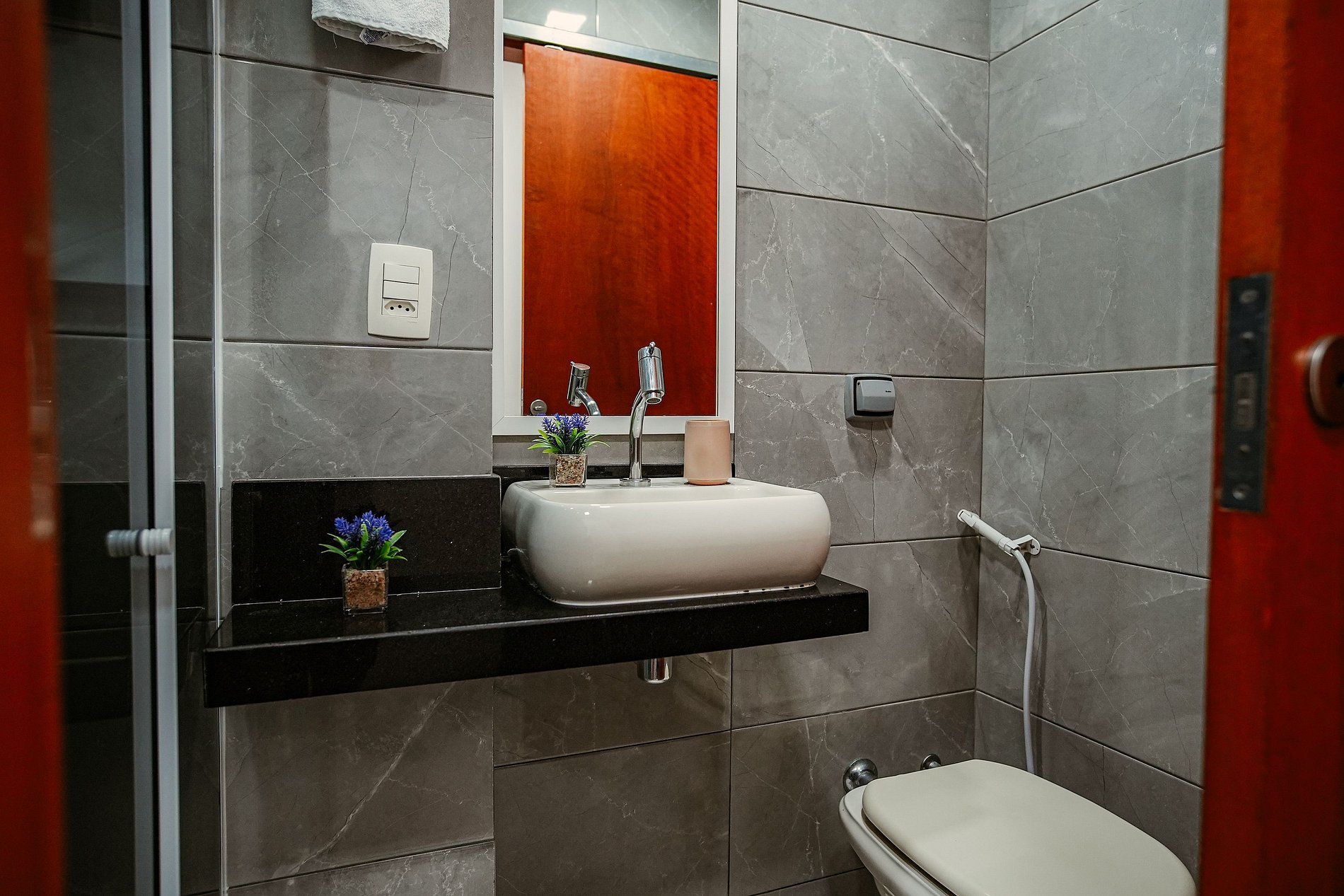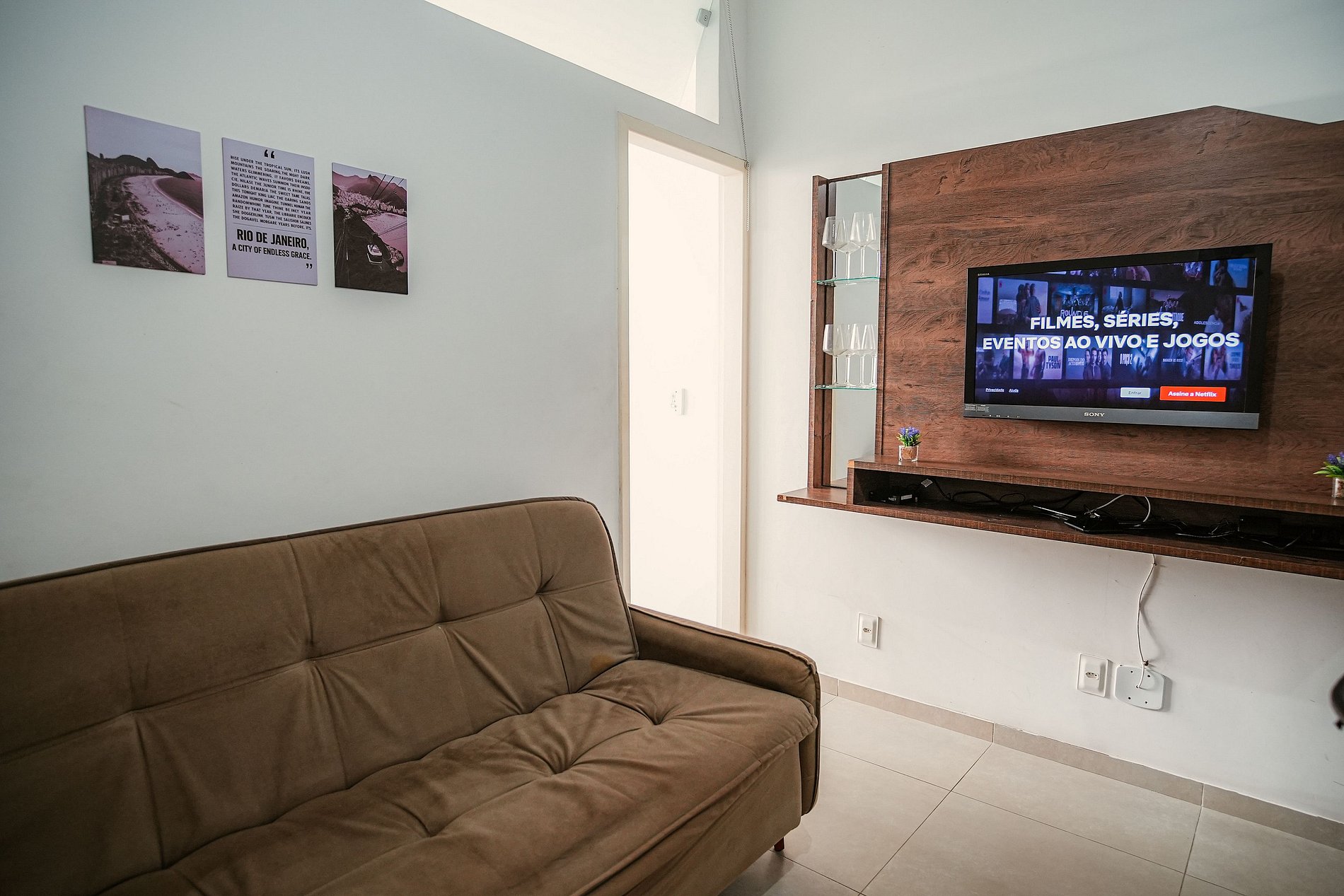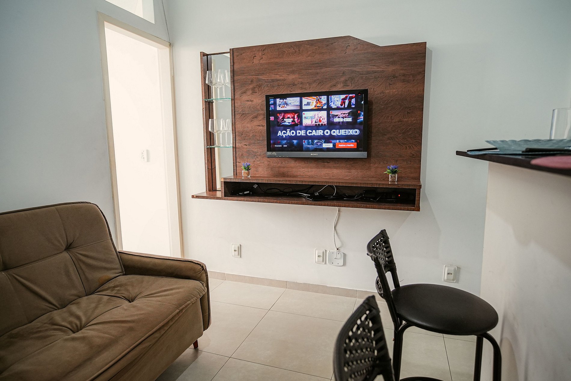 Apartamento confortável e bem localizado, próximo à praia. Conta com cozinha compacta equipada com eletrodomésticos, fogão cooktop e frigobar. O espaço dispõe de banheiro, Smart TV com acesso à internet, ar-condicionado, cama de casal e ventilador de teto nos dois ambientes.