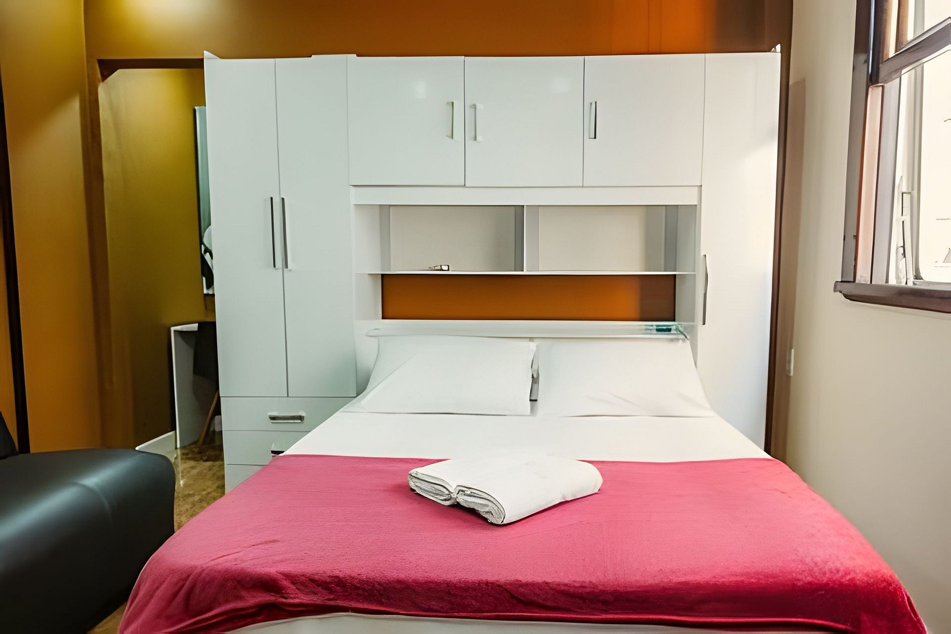 O apartamento possui uma localização privilegiada, fica no centro da cidade, na praça da Cinelândia, ao lado da saída do metrô e estação do VLT. Do outro lado da rua tem o Consulado Americano e o Aeroporto Santos Dumont fica a 5 minutos. Nas redondezas tem o Teatro Municipal, os Arcos da Lapa e a Escadaria Selarón. O apartamento possui uma cozinha totalmente equipada para sua estadia e um banheiro espaçõso. O quarto tem ar condicionado, smart tv, sofá cama e mesa com cadeira de trabalho.