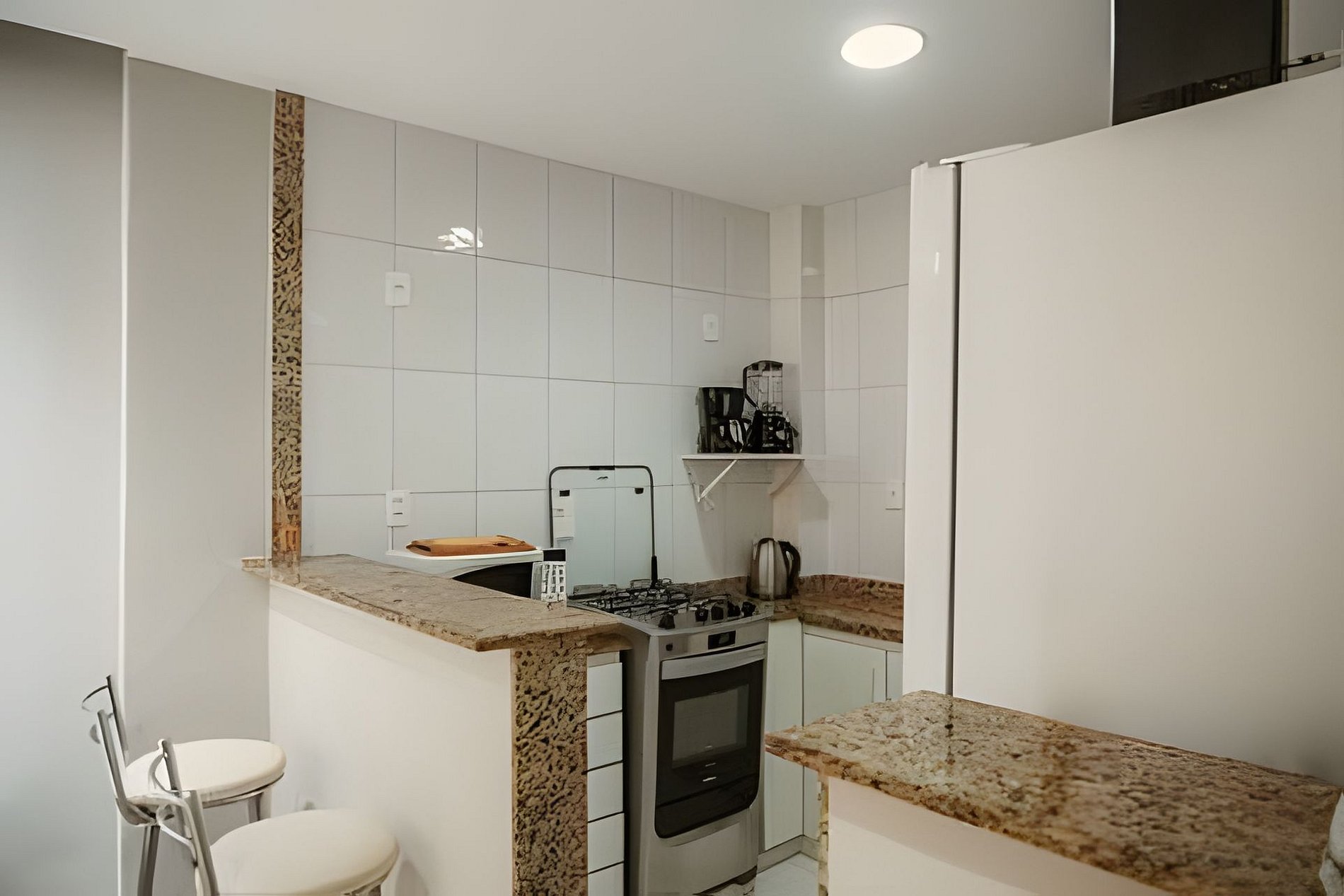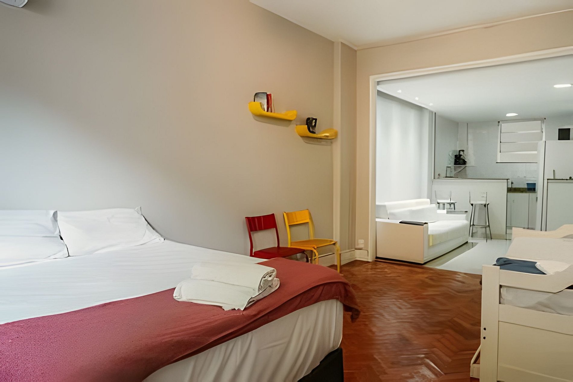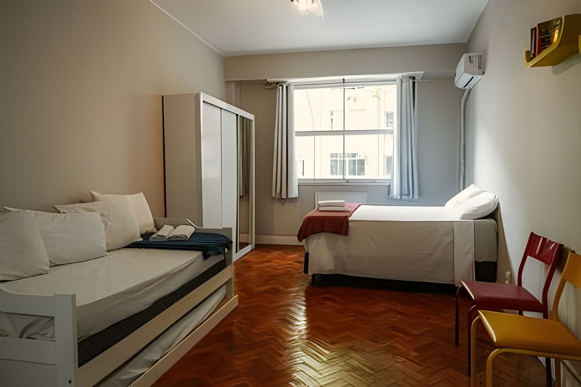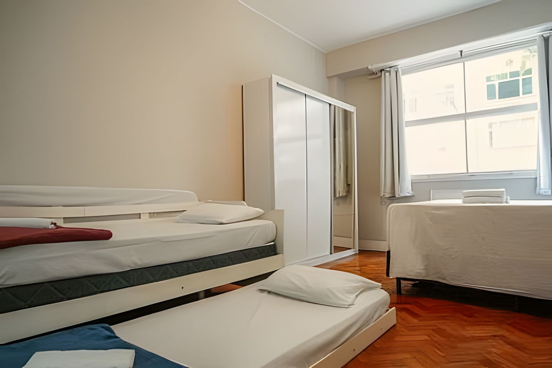 Hospede-se na quadra da praia de Copacabana em um apartamento confortável para até quatro pessoas, com cama de casal, bicama, ar-condicionado, internet sem fio, banheiro e cozinha completos.