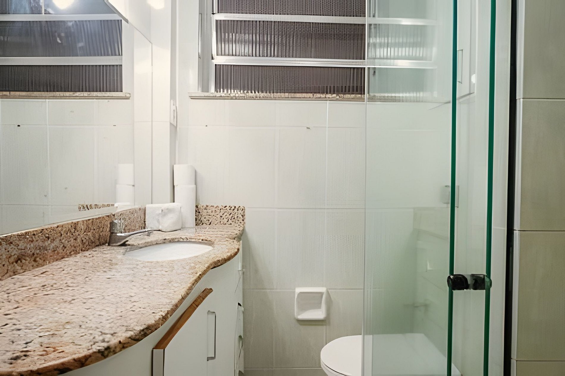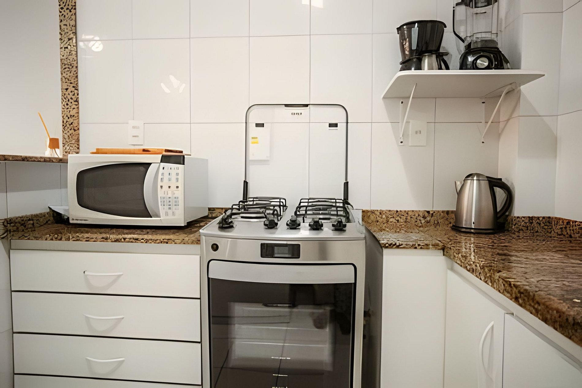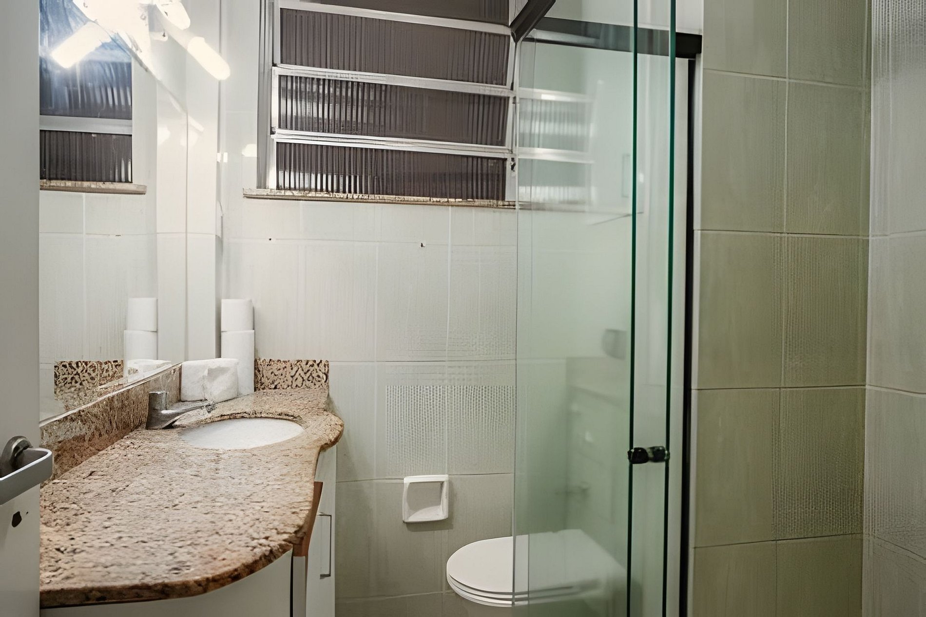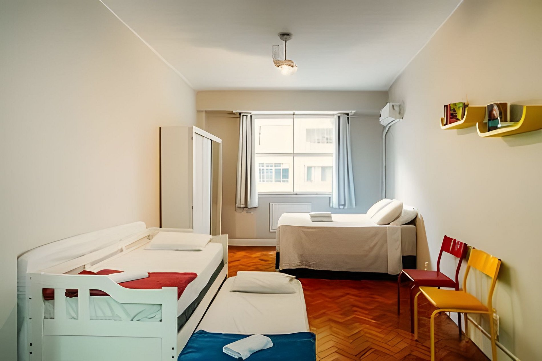 Hospede-se na quadra da praia de Copacabana em um apartamento confortável para até quatro pessoas, com cama de casal, bicama, ar-condicionado, internet sem fio, banheiro e cozinha completos.