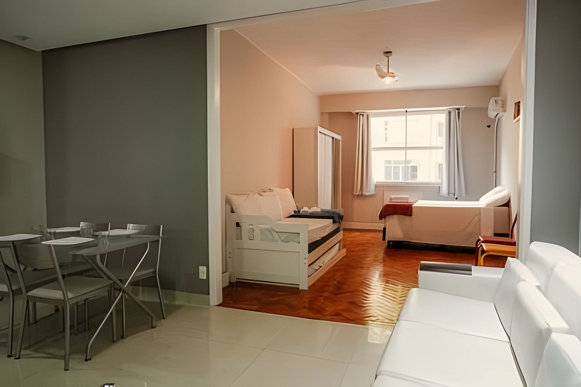 Hospede-se a poucos metros da praia de Copacabana em um apartamento confortável para até quatro pessoas. O espaço conta com cama de casal, bicama, ar-condicionado, internet sem fio, banheiro e cozinha equipada.