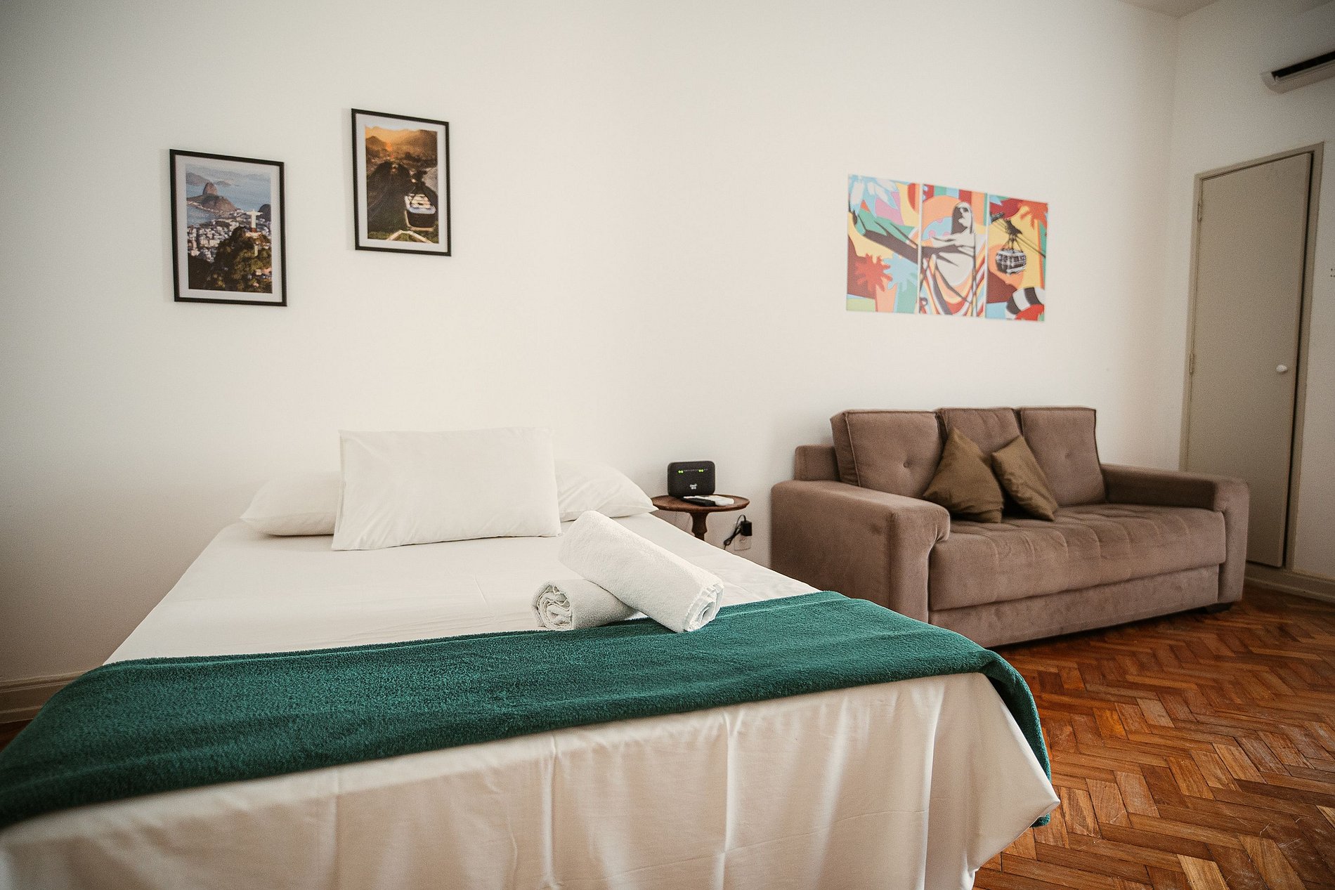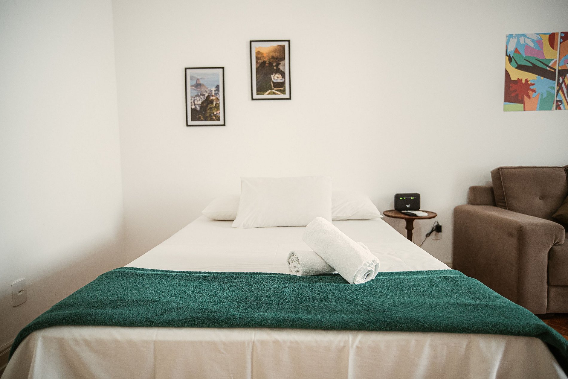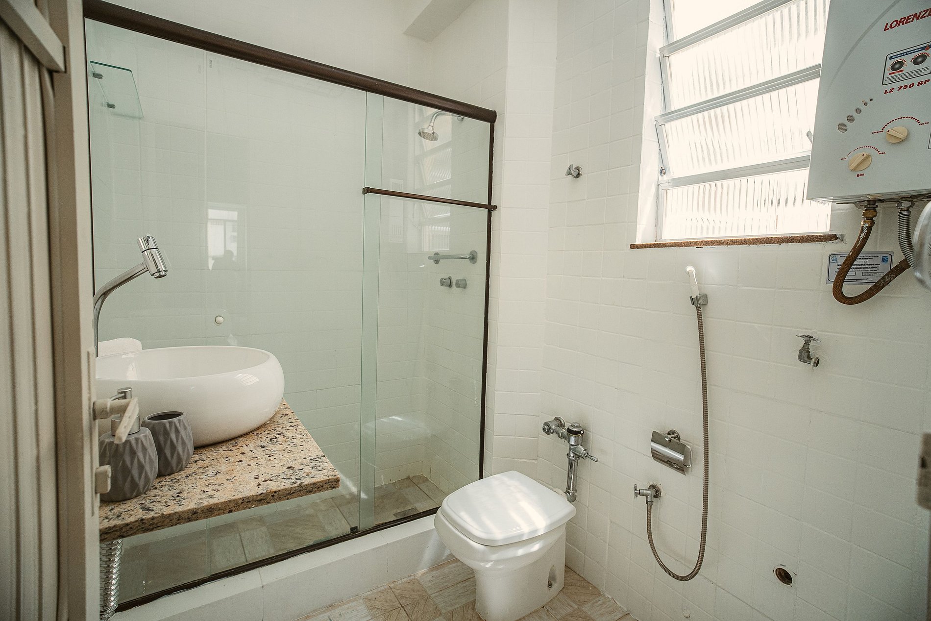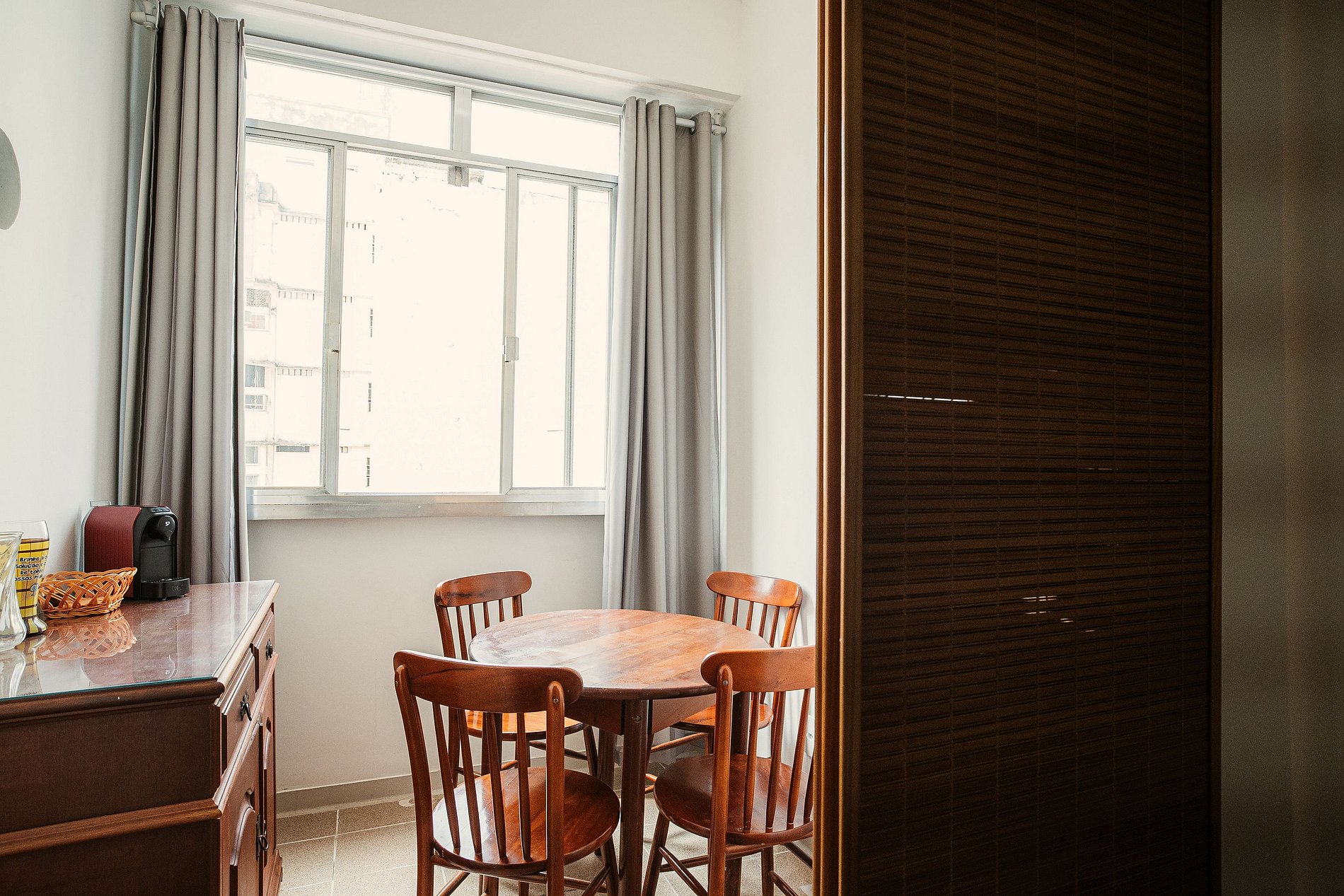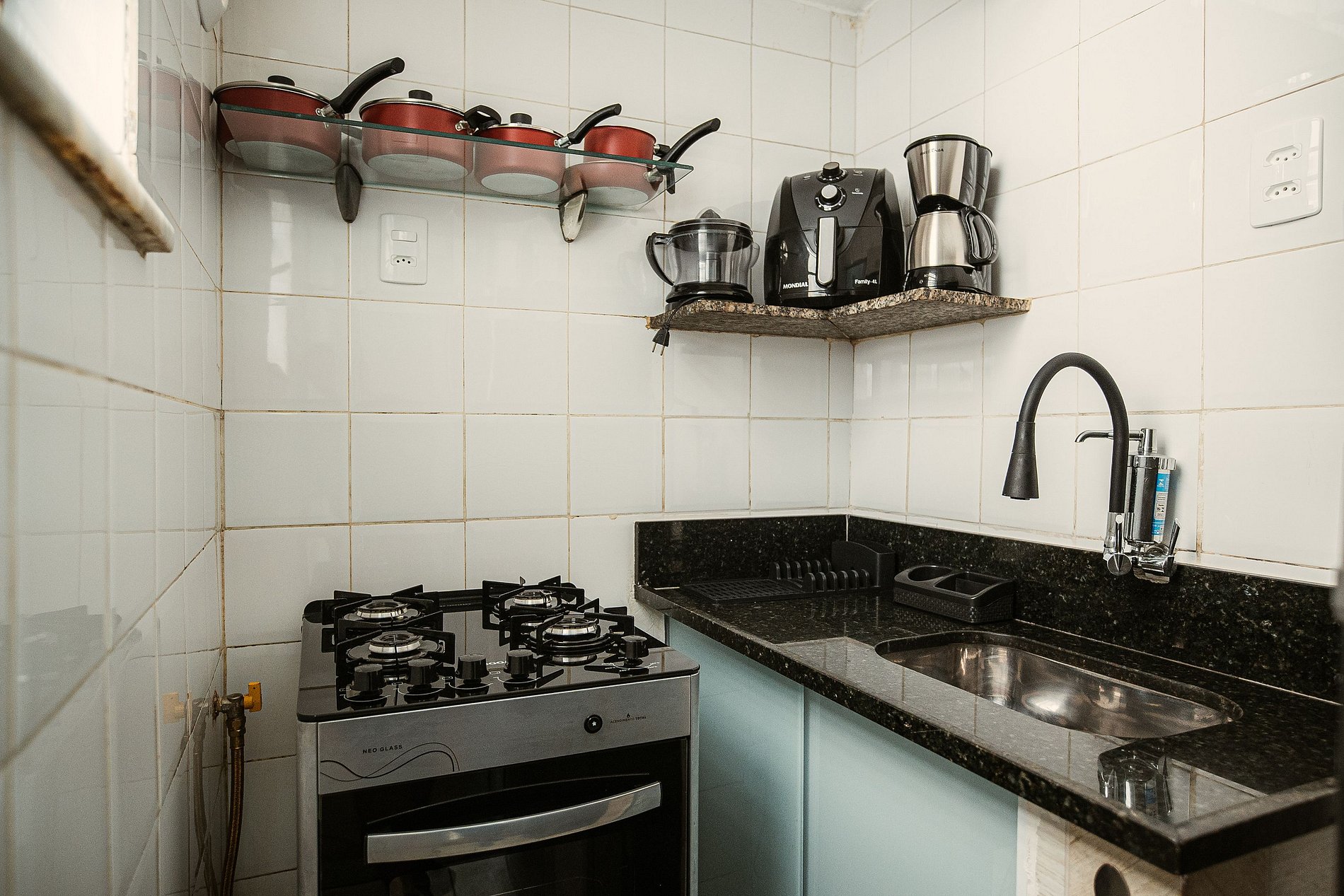 Apartamento bem localizado, em andar alto, claro e arejado. A sala conta com cama de casal, sofá e bicama para acomodar até dois hóspedes. O imóvel dispõe de armário embutido e mesa de jantar com vista lateral para a praia. Cozinha moderna, equipada para uma estadia curta. O apartamento oferece banheiro, ar-condicionado, internet e Smart TV.